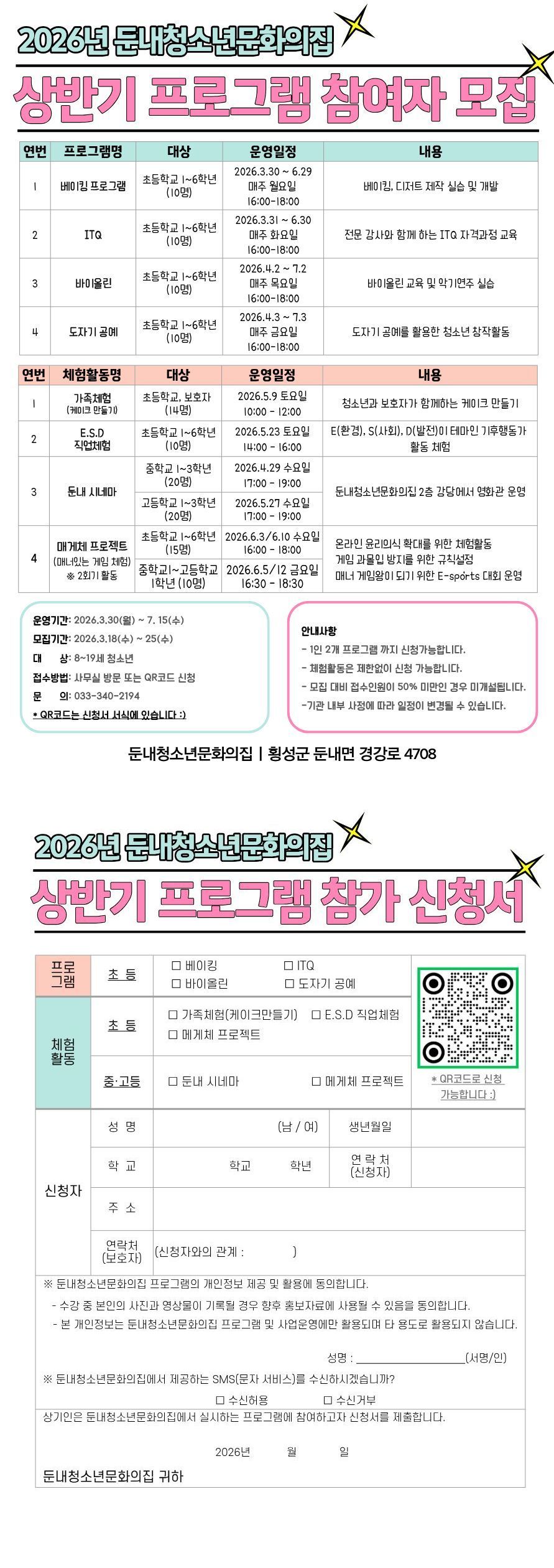 □『2026 둔내청소년문화의집 상반기 프로그램』참여자 모집 안내