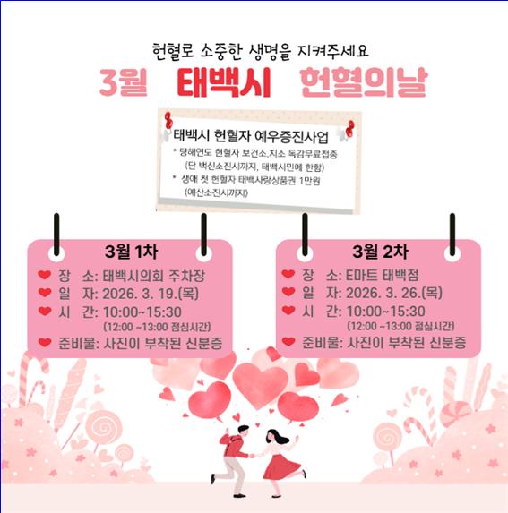 [태백시] 2026년 3월 '헌혈의 날' 운영 안내