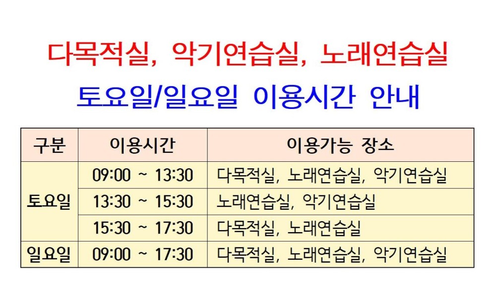[강릉시] 북부청소년문화의집 다목적실, 노래연습실, 악기연습실 주말 이용 가능시간 안내 Home시군별소식62707 한뵤리 한뵤리님의 홈 전체게시물 아이디로 검색 한뵤리님의 홈 전체게시물 아이디로 검색 11시간 12분전 97 0 0 LV.2 37% 관련링크 : http://www.gn.go.kr/www/selectBbsNttView.do?key=258&bbsNo=12&nttNo=204731&searchCtgry=&searchCnd=all&searchKrwd=&pageIndex=1&integrDeptCode= 3회 연결 신고 목록 게시글 신고 안내 아래 내용중 해당하는 내용이 있을경우 아래 게시글신고 버튼을 클릭하시고 사유를 작성해주시면 빠른시간 안에 삭제및 필요조치하여 드리겠습니다. 로그인후 이용이 가능합니다. 그리고 답변은 메뉴 아이러브강원 > 1:1문의에서 확인이 가능합니다. 자신 또는 제3자를 비방하거나 중상 모략으로 명예를 손상시키는 내용 범죄행위와 관련이 있다고 판단되는 내용 다른 회원 또는 제3자의 저작권 등 기타 권리를 침해하는 내용 타인의 개인정보, 사생활을 침해하거나 명예를 손상시키는 경우 자신의 글을 타인이 도용한 경우 위의 내용 이외에 기타사항 본문 북부청소년문화의집 다목적실, 노래연습실, 악기연습실 주말 이용 가능시간 안내 사진 확대보기 [출처 : 강릉시청 -시정소식-] 0 로그인 후 추천을 하실 수 있습니다. 한뵤리 님의 최신글 한뵤리 님의 최신댓글 시군별소식 - 북부청소년문화의집 다목적실, 노래연습실, 악기연습실 주말 이용 가능시간 안내 11시간 12분전 채용정보 - 알펜시아리조트 객실팀 룸메이드 직원 모집(접수기간 03.13~채용시까지) 2026-03-13 시군별소식 - 2026 김동명문학관 운영 프로그램 '인문학 아카데미' 안내 2026-03-13 유머 - 쇠사슬을 질질 끌며 엘베에 같이 탄 아저씨 2026-03-13 채용정보 - 알펜시아리조트 객실팀 룸메이드 직원 모집 (접수기간 : 03.13~채용시까지) 2026-03-13 채용정보 - [구인 마감] 주영노인복지센터 요양보호사 채용(접수기간 3.12.(목)~채용시까지) 2026-03-12 채용정보 - 드림피플파트너스 강릉시 연곡면 감리단 사무보조 채용 공고 (접수기간 3.11(수)~4.10(금)까지) 2026-03-12 채용정보 - 주영노인복지센터 요양보호사(접수기간:3.12.(목)~채용시까지) 2026-03-12 Q&A - 바다보며회먹기딱좋답니다 스끼다시도푸짐하고서비스도괜찮았어요 가족들이랑가기괜찮으니 한번가보세요ㅎㅎ 2026-02-20 유머 - 그 다음 얘기가 궁금해서 오늘 밤 잠이 안 올거 같습니다 2026-02-20 유머 - ㅋㅋㅋㅋㅋ 2026-02-20 나눔장터 - 판매완료입니다. 2025-09-19 잡담 - 참담한 현실이네요..ㅠㅠ 2025-08-22 잡담 - 요즘은 편의점이 백화점이네요 2025-08-20 한뵤리 님의 최신글 한뵤리 님의 최신댓글 시군별소식 - 북부청소년문화의집 다목적실, 노래연습실, 악기연습실 주말 이용 가능시간 안내 11시간 12분전 채용정보 - 알펜시아리조트 객실팀 룸메이드 직원 모집(접수기간 03.13~채용시까지) 2026-03-13 시군별소식 - 2026 김동명문학관 운영 프로그램 '인문학 아카데미' 안내 2026-03-13 유머 - 쇠사슬을 질질 끌며 엘베에 같이 탄 아저씨 2026-03-13 채용정보 - 알펜시아리조트 객실팀 룸메이드 직원 모집 (접수기간 : 03.13~채용시까지) 2026-03-13 채용정보 - [구인 마감] 주영노인복지센터 요양보호사 채용(접수기간 3.12.(목)~채용시까지) 2026-03-12 채용정보 - 드림피플파트너스 강릉시 연곡면 감리단 사무보조 채용 공고 (접수기간 3.11(수)~4.10(금)까지) 2026-03-12 채용정보 - 주영노인복지센터 요양보호사(접수기간:3.12.(목)~채용시까지) 2026-03-12 Q&A - 바다보며회먹기딱좋답니다 스끼다시도푸짐하고서비스도괜찮았어요 가족들이랑가기괜찮으니 한번가보세요ㅎㅎ 2026-02-20 유머 - 그 다음 얘기가 궁금해서 오늘 밤 잠이 안 올거 같습니다 2026-02-20 유머 - ㅋㅋㅋㅋㅋ 2026-02-20 나눔장터 - 판매완료입니다. 2025-09-19 잡담 - 참담한 현실이네요..ㅠㅠ 2025-08-22 잡담 - 요즘은 편의점이 백화점이네요 2025-08-20 SNS 댓글목록 0 등록된 댓글이 없습니다.