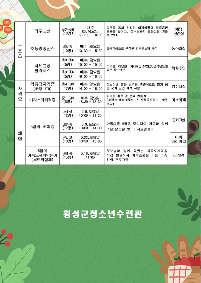 [횡성군] [대표] 횡성군청소년수련관 2026년 상반기 프로그램 참여자 모집 안내