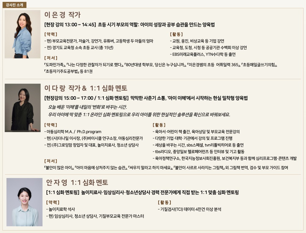 ※ 1:1 온라인 멘토링 : 학부모 1인당 총 3회 진행 예정(회당 30분 소요 / 3.30 시작 예정)