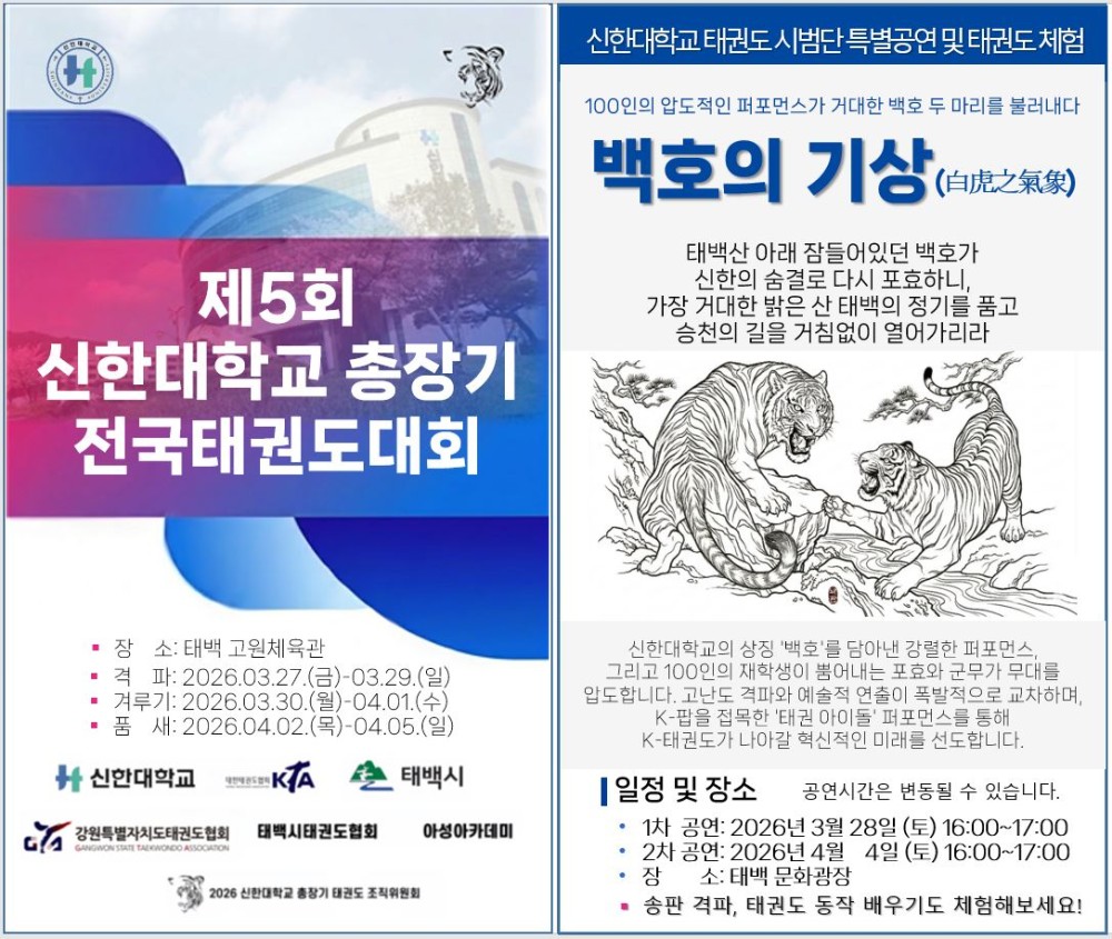 [태백시] 제5회 신한대학교 총장기 전국태권도대회, 신한대학교 태권도 시범단 특별공연 및 체험 안내