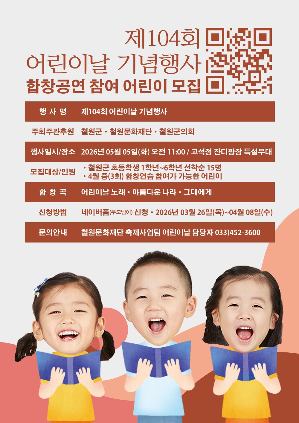 [철원군] 제104회 어린이날 기념행사 합창공연 참여 어린이 모집 공고