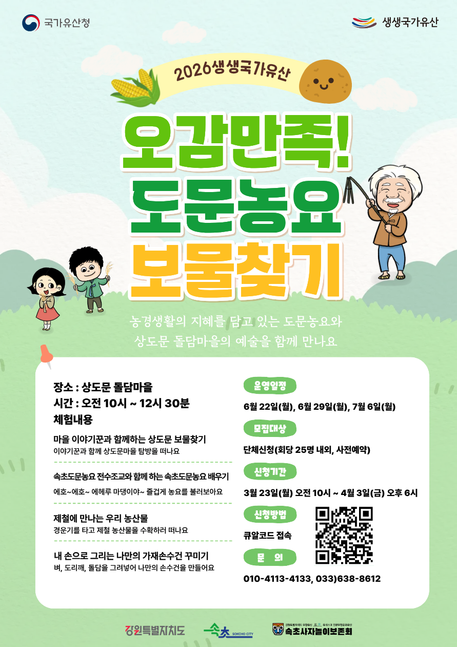 [속초시] 프로그램 참가자 모집(흥미진진 사자를만나다/도문농요 보물찾기) Home시군별소식62881 비타500 비타500님의 홈 전체게시물 아이디로 검색 비타500님의 홈 전체게시물 아이디로 검색 8시간 9분전 101 0 0 LV.3 38% 관련링크 : https://www.sokcho.go.kr/sc/portal/sokchonews/notice?articleSeq=815237 7회 연결 신고 목록 게시글 신고 안내 아래 내용중 해당하는 내용이 있을경우 아래 게시글신고 버튼을 클릭하시고 사유를 작성해주시면 빠른시간 안에 삭제및 필요조치하여 드리겠습니다. 로그인후 이용이 가능합니다. 그리고 답변은 메뉴 아이러브강원 > 1:1문의에서 확인이 가능합니다. 자신 또는 제3자를 비방하거나 중상 모략으로 명예를 손상시키는 내용 범죄행위와 관련이 있다고 판단되는 내용 다른 회원 또는 제3자의 저작권 등 기타 권리를 침해하는 내용 타인의 개인정보, 사생활을 침해하거나 명예를 손상시키는 경우 자신의 글을 타인이 도용한 경우 위의 내용 이외에 기타사항 본문 0 로그인 후 추천을 하실 수 있습니다. 비타500 님의 최신글 비타500 님의 최신댓글 시군별소식 - 국가유산 방문교육 희망기관 모집중 8시간 9분전 시군별소식 - 프로그램 참가자 모집(흥미진진 사자를만나다/도문농요 보물찾기) 8시간 9분전 시군별소식 - [교육가족지원과] 속초시 가족센터 직원 채용 공고 2026-03-19 자유글 - 초딩때 인성 쓰레기 선생 썰 - 학교편 (조금 스압) 2026-03-17 시군별소식 - [관광과] 관광과-속초해수욕장 방사능 검사 결과 알림(25. 8. 25. 채취~26. 2. 19. 채취) 2026-03-12 시군별소식 - [기획예산과] 의원발의 조례안 예고(속초시 체육시설 관리운영 조례 일부개정조례안) 2026-03-12 시군별소식 - [자치행정과] 2025~26년 강원특별자치도 지역특화형 비자 전환 추천 변경(3차) 공고 2026-03-11 유머 - 절묘한 광고 2026-03-10 Q&A - 갓본 이케맨 이죠...https://www.youtube.com/watch?v=7PpIdJLZc-o 2026-02-21 Q&A - 저의 전문분야는 아니지만 최대한 열심히 답변해드리겠습니다 ㅎㅎ아녀..보통 중국남자를 선호하는 여자분들은 적을거같네요 ㅠㅠ요즘 코로나 때매 인식도 확낮아져서 중국남자를 선호하는거 같진안아요 2026-02-21 Q&A - 인구로 따지면 전북 전주가 더 크구요 면적으로 따지면 강원도 원주가 더 큽니다... 2026-02-21 갤러리 - 가고싶네요...사진 잘보고 갑니다. 2026-02-07 잡담 - 꼭 필요한 정보네요 2025-03-13 잡담 - 좋은정보 감사합니다. 2025-03-13 비타500 님의 최신글 비타500 님의 최신댓글 시군별소식 - 국가유산 방문교육 희망기관 모집중 8시간 9분전 시군별소식 - 프로그램 참가자 모집(흥미진진 사자를만나다/도문농요 보물찾기) 8시간 9분전 시군별소식 - [교육가족지원과] 속초시 가족센터 직원 채용 공고 2026-03-19 자유글 - 초딩때 인성 쓰레기 선생 썰 - 학교편 (조금 스압) 2026-03-17 시군별소식 - [관광과] 관광과-속초해수욕장 방사능 검사 결과 알림(25. 8. 25. 채취~26. 2. 19. 채취) 2026-03-12 시군별소식 - [기획예산과] 의원발의 조례안 예고(속초시 체육시설 관리운영 조례 일부개정조례안) 2026-03-12 시군별소식 - [자치행정과] 2025~26년 강원특별자치도 지역특화형 비자 전환 추천 변경(3차) 공고 2026-03-11 유머 - 절묘한 광고 2026-03-10 Q&A - 갓본 이케맨 이죠...https://www.youtube.com/watch?v=7PpIdJLZc-o 2026-02-21 Q&A - 저의 전문분야는 아니지만 최대한 열심히 답변해드리겠습니다 ㅎㅎ아녀..보통 중국남자를 선호하는 여자분들은 적을거같네요 ㅠㅠ요즘 코로나 때매 인식도 확낮아져서 중국남자를 선호하는거 같진안아요 2026-02-21 Q&A - 인구로 따지면 전북 전주가 더 크구요 면적으로 따지면 강원도 원주가 더 큽니다... 2026-02-21 갤러리 - 가고싶네요...사진 잘보고 갑니다. 2026-02-07 잡담 - 꼭 필요한 정보네요 2025-03-13 잡담 - 좋은정보 감사합니다. 2025-03-13 SNS 댓글목록 0 등록된 댓글이 없습니다.