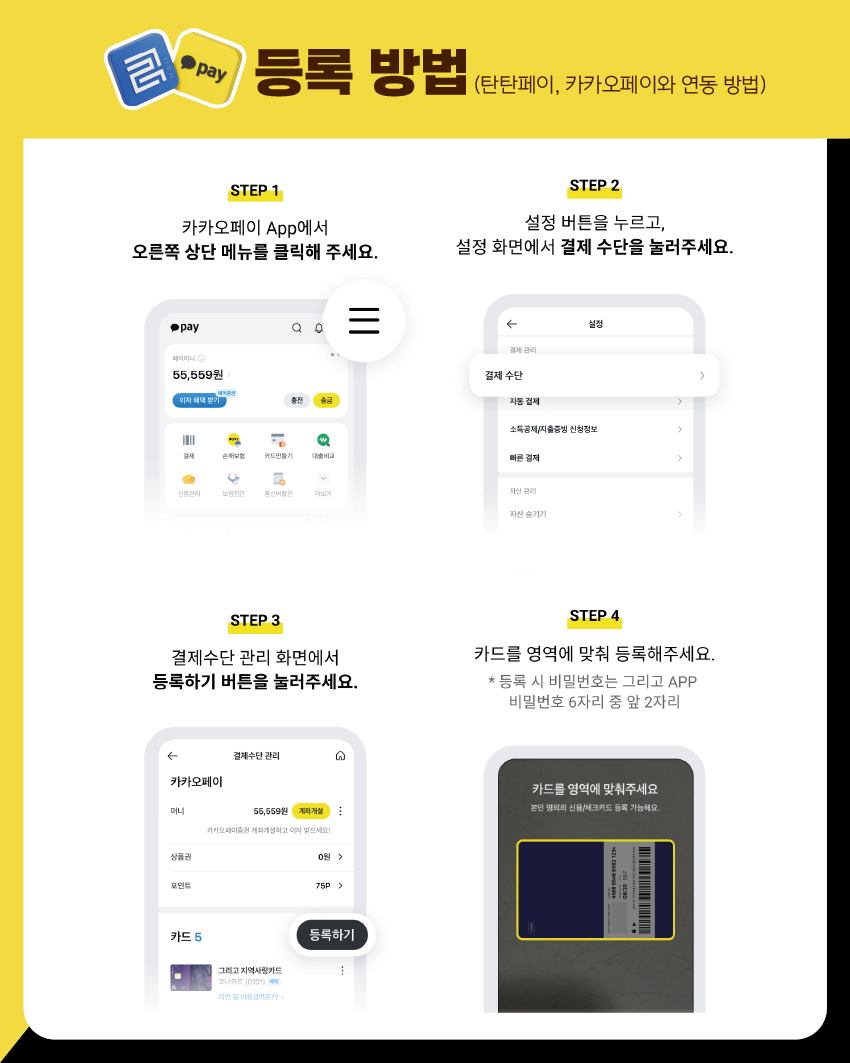 적용내용: 탄탄페이 카카오페이(간편결제) 등록 및 결제