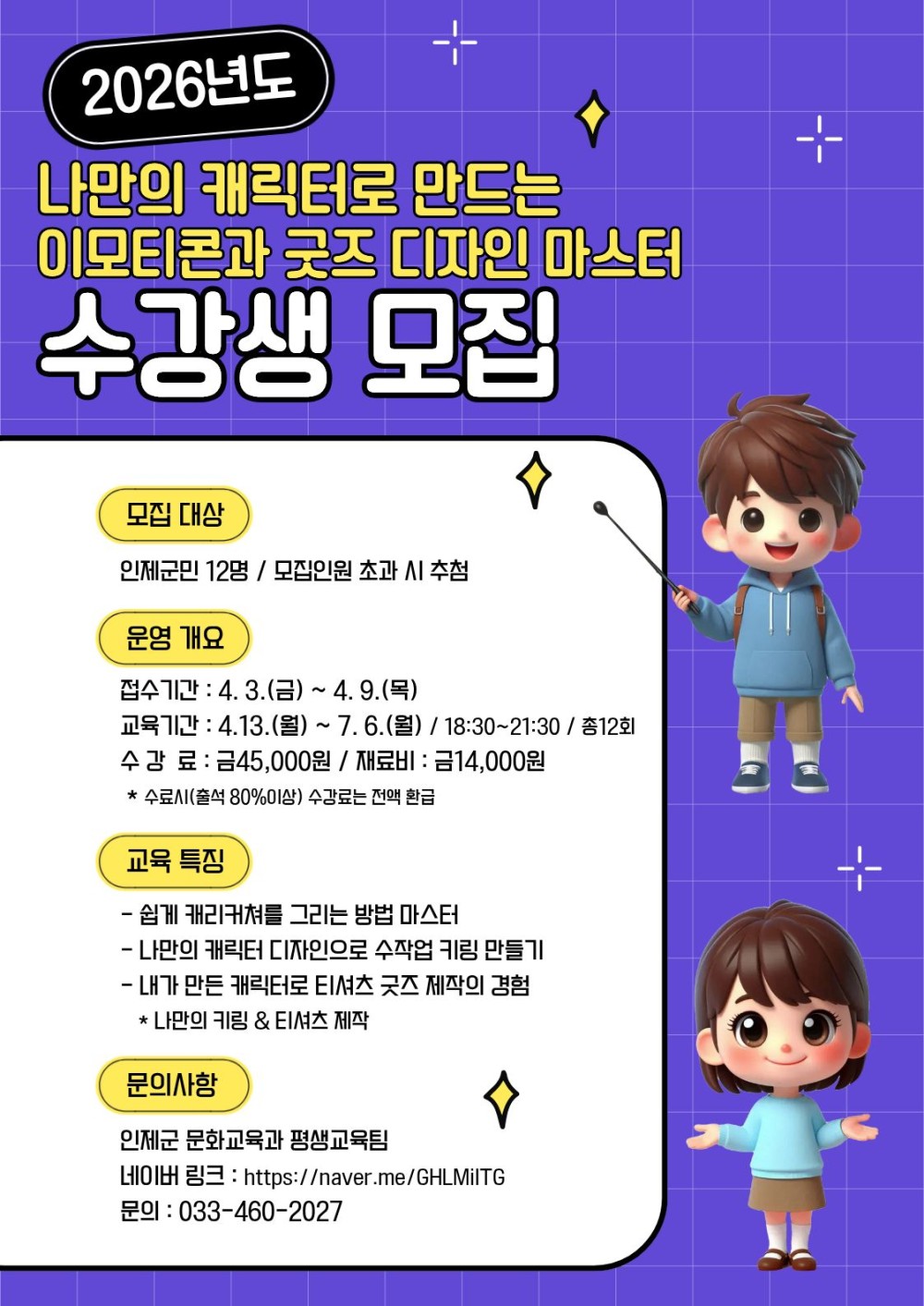 [인제군] [4월 정보화] 나만의 캐릭터로 만드는 이모티콘과 굿즈 디자인 마스터
