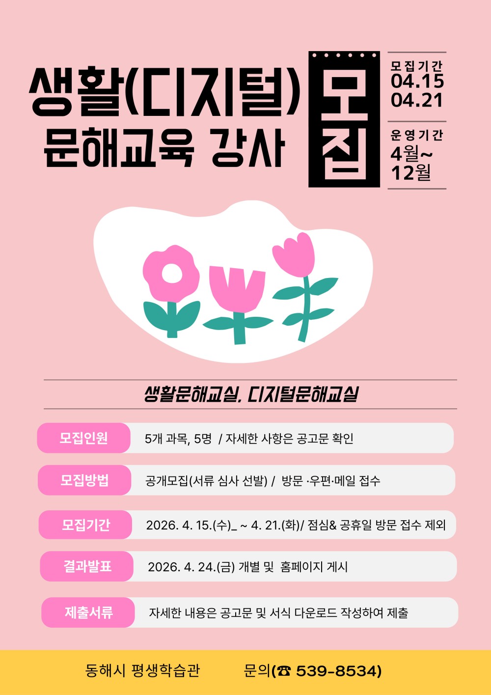 [동해시] 2026년 성인문해교육 생활(디지털)문해교육 강사 모집