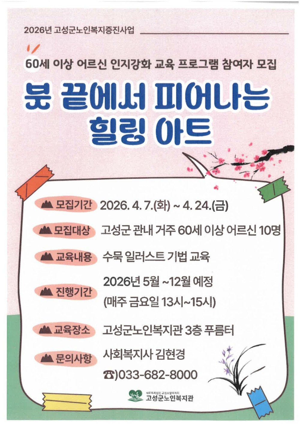 [고성군] 고성군노인복지증진사업 『붓끝에서 피어나는 힐링아트 』 참여자 모집