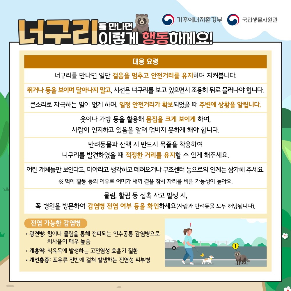 생활 주변 출몰 야생동물(너구리)대처 관련 카드뉴스