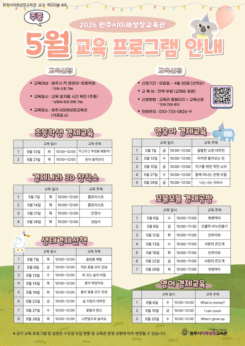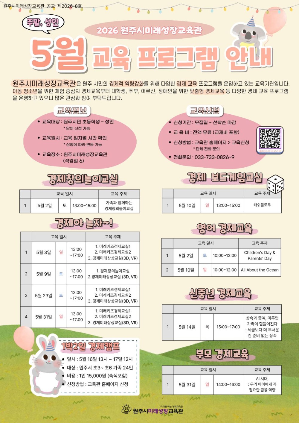 미래를 여는 경제교육관 「원주시미래성장교육관」에서 2026년 5월 다양한 경제 교육 프로그램을 운영하오니, 많은 관심과 참여 부탁드립니다.