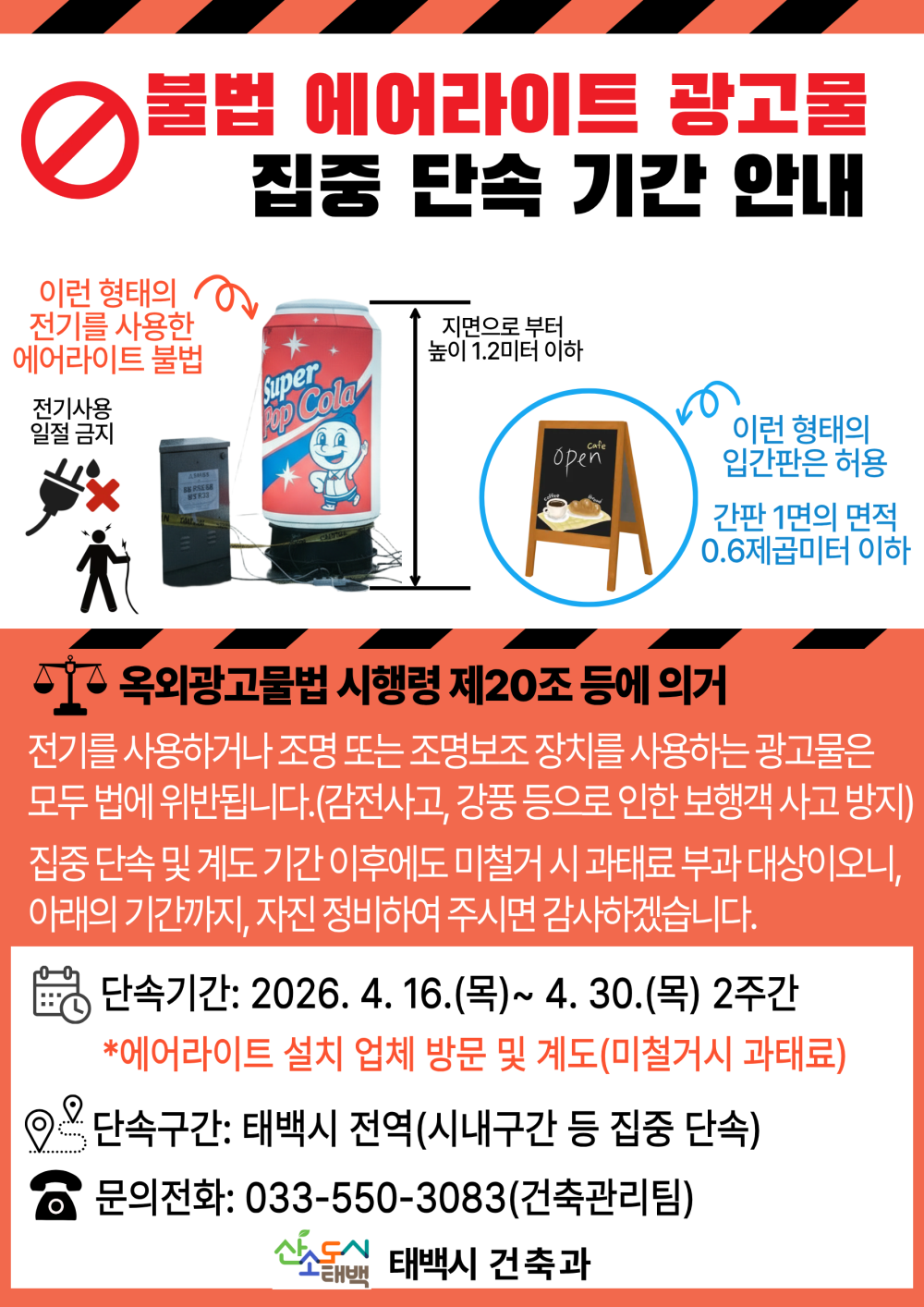 [태백시] 불법 옥외광고물 풍선형 입간판(에어라이트) 집중단속 기간 운영안내