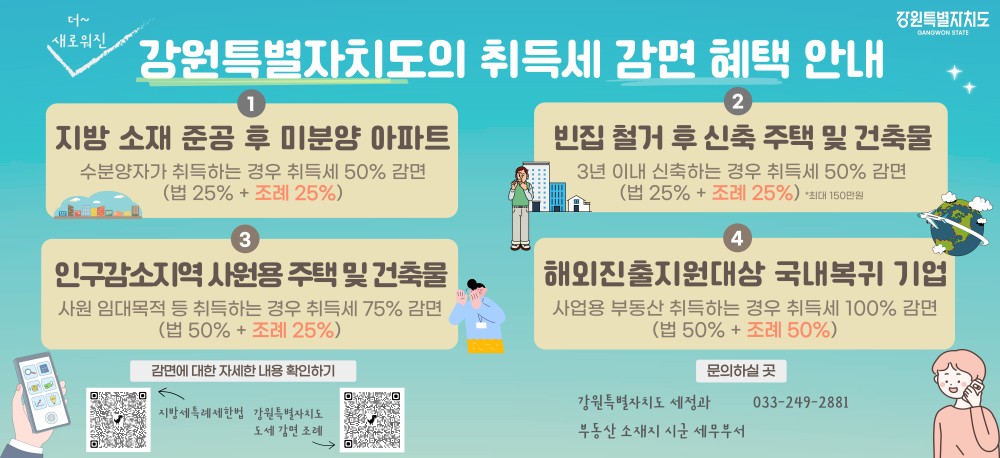 [강원도] 강원특별자치도 도세 감면 조례 개정 알림 Home시군별소식63448 바카라스 바카라스님의 홈 전체게시물 아이디로 검색 바카라스님의 홈 전체게시물 아이디로 검색 2시간 34분전 10 0 0 LV.1 37% 관련링크 : https://state.gwd.go.kr/portal/bulletin/notice?articleSeq=269390 0회 연결 신고 목록 게시글 신고 안내 아래 내용중 해당하는 내용이 있을경우 아래 게시글신고 버튼을 클릭하시고 사유를 작성해주시면 빠른시간 안에 삭제및 필요조치하여 드리겠습니다. 로그인후 이용이 가능합니다. 그리고 답변은 메뉴 아이러브강원 > 1:1문의에서 확인이 가능합니다. 자신 또는 제3자를 비방하거나 중상 모략으로 명예를 손상시키는 내용 범죄행위와 관련이 있다고 판단되는 내용 다른 회원 또는 제3자의 저작권 등 기타 권리를 침해하는 내용 타인의 개인정보, 사생활을 침해하거나 명예를 손상시키는 경우 자신의 글을 타인이 도용한 경우 위의 내용 이외에 기타사항 본문 [출처 : 강원도청 -시정소식-] 0 로그인 후 추천을 하실 수 있습니다. 바카라스 님의 최신글 바카라스 님의 최신댓글 시군별소식 - 강원특별자치도 도세 감면 조례 개정 알림 2시간 34분전 채용정보 - 2026년도 (재)강원혁신도시발전지원센터 질병휴직 대체인력(기간제 근로자)직원 채용 공고 2시간 34분전 채용정보 - 강원특별자치도원주의료원 신규직원 모집공고(간호사) 2시간 34분전 채용정보 - 2026년도 강원특별자치도 청원경찰 채용시험 최종합격자 결정 및 임용후보자 등록요령 공고 10시간 34분전 시군별소식 - 산업·자원 분야 부정수급 집중신고기간 안내 2026-04-19 시군별소식 - [대표] 2026년 1학기 강원대학교 생활과학교실 프로그램 안내(온라인) 2026-04-17 채용정보 - [기타] 굿네이버스 강원중부지부 강원중부아동보호전문기관 기간제계약직 채용 2026-04-16 시군별소식 - 고유가 피해지원금 신청·지급 안내 2026-04-16 Q&A - 위선자입니다모든인간은 악함을 가지고 있습니다신앙이 있다는 사람도 그렇지 않은 사람들과 별반 다른게 없습니다그래서 더 위선적이고 신뢰가 없어 보여요 2026-04-06 바카라스 님의 최신글 바카라스 님의 최신댓글 시군별소식 - 강원특별자치도 도세 감면 조례 개정 알림 2시간 34분전 채용정보 - 2026년도 (재)강원혁신도시발전지원센터 질병휴직 대체인력(기간제 근로자)직원 채용 공고 2시간 34분전 채용정보 - 강원특별자치도원주의료원 신규직원 모집공고(간호사) 2시간 34분전 채용정보 - 2026년도 강원특별자치도 청원경찰 채용시험 최종합격자 결정 및 임용후보자 등록요령 공고 10시간 34분전 시군별소식 - 산업·자원 분야 부정수급 집중신고기간 안내 2026-04-19 시군별소식 - [대표] 2026년 1학기 강원대학교 생활과학교실 프로그램 안내(온라인) 2026-04-17 채용정보 - [기타] 굿네이버스 강원중부지부 강원중부아동보호전문기관 기간제계약직 채용 2026-04-16 시군별소식 - 고유가 피해지원금 신청·지급 안내 2026-04-16 Q&A - 위선자입니다모든인간은 악함을 가지고 있습니다신앙이 있다는 사람도 그렇지 않은 사람들과 별반 다른게 없습니다그래서 더 위선적이고 신뢰가 없어 보여요 2026-04-06 SNS 댓글목록 0 등록된 댓글이 없습니다.