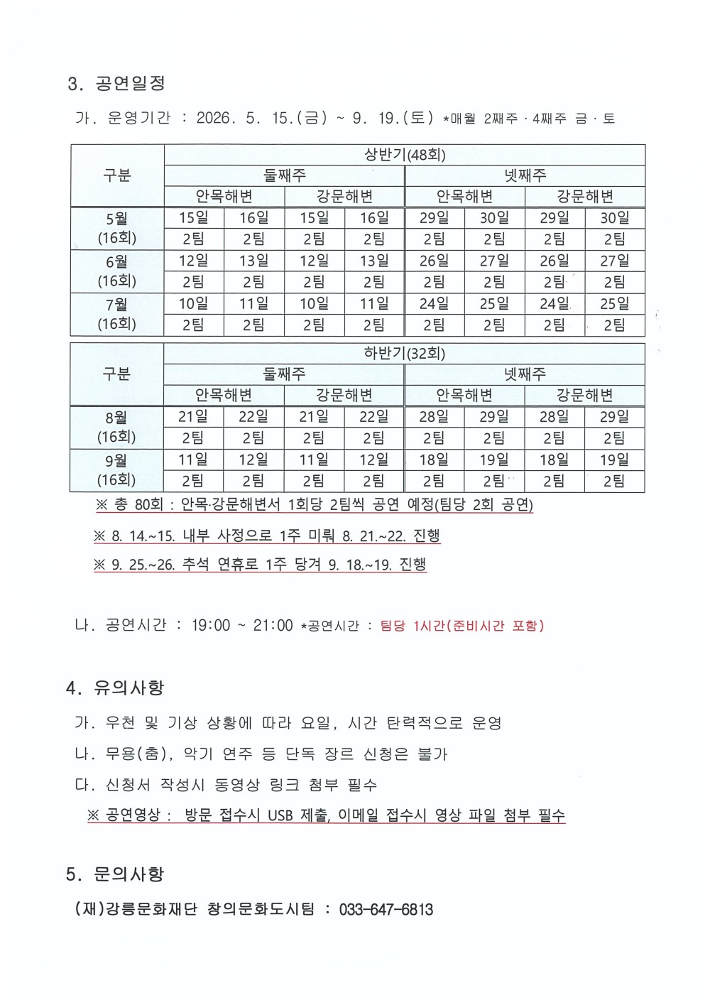 ○ 문의사항: (재)강릉문화재단 창의문화도시팀 (☎ xxx-xxx-xxxx)