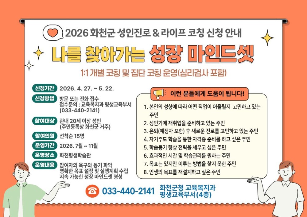 [화천군] 2026년 화천군 성인진로&라이프코칭 신청 안내