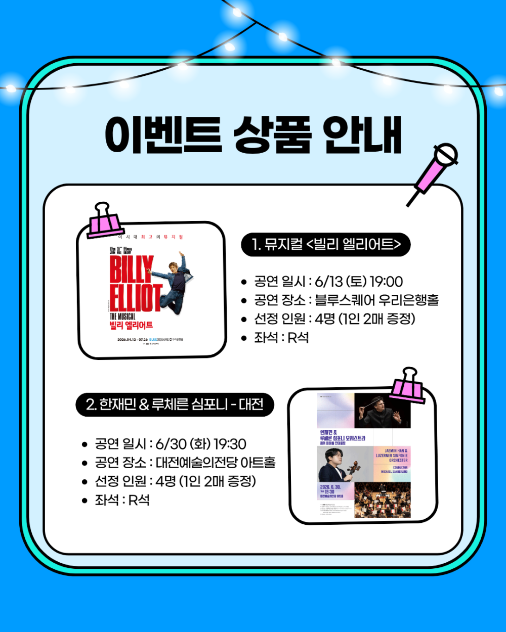 인기 뮤지컬, 콘서트 티켓 증정 이벤트를 진행합니다!