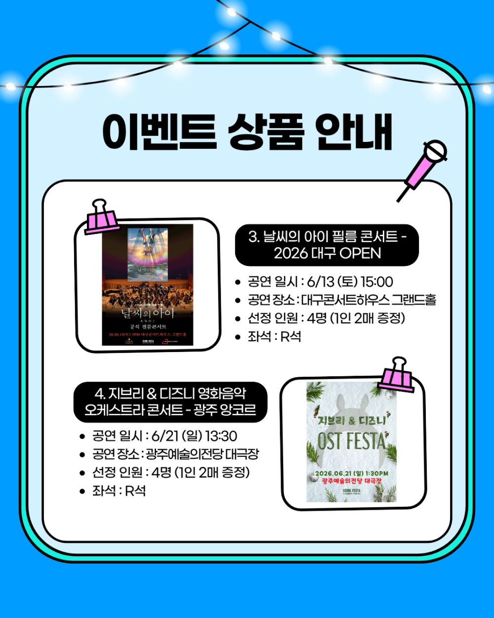 - 이벤트 상품: 공연 티켓(1인 2매) 증정