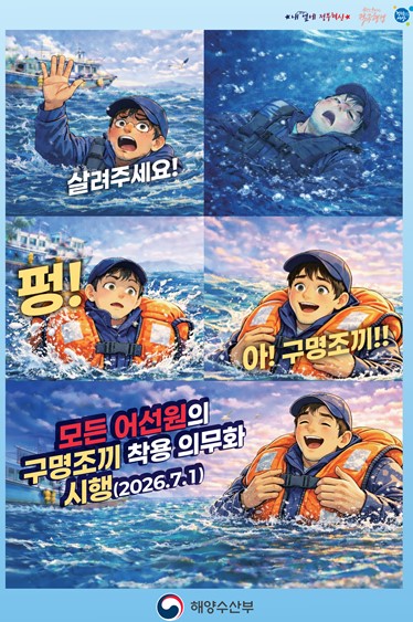 <어선안전조업 및 어선원의 안전보전 증진등에 관한 법률> 개정으로 2026년 7월 1일부터 전 어선원 구명조끼 착용 의무화됩니다.