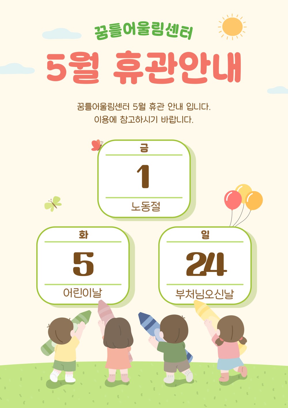 [횡성군] [대표] 꿈틀어울림센터 5월 휴관 안내 Home시군별소식63599 바카라스 바카라스님의 홈 전체게시물 아이디로 검색 바카라스님의 홈 전체게시물 아이디로 검색 2시간 43분전 15 0 0 LV.1 37% 관련링크 : https://www.hsg.go.kr/www/selectBbsNttView.do;jsessionid=11F04F49142196351D93055F68106DE2?key=812&bbsNo=59&nttNo=420794&pageUnit=10&searchCnd=all 0회 연결 신고 목록 게시글 신고 안내 아래 내용중 해당하는 내용이 있을경우 아래 게시글신고 버튼을 클릭하시고 사유를 작성해주시면 빠른시간 안에 삭제및 필요조치하여 드리겠습니다. 로그인후 이용이 가능합니다. 그리고 답변은 메뉴 아이러브강원 > 1:1문의에서 확인이 가능합니다. 자신 또는 제3자를 비방하거나 중상 모략으로 명예를 손상시키는 내용 범죄행위와 관련이 있다고 판단되는 내용 다른 회원 또는 제3자의 저작권 등 기타 권리를 침해하는 내용 타인의 개인정보, 사생활을 침해하거나 명예를 손상시키는 경우 자신의 글을 타인이 도용한 경우 위의 내용 이외에 기타사항 본문 사진확대보기 꿈틀어울림센터 5월 휴관일을 안내해 드립니다. 이용에 참고하시기 바랍니다. [출처 : 횡성군청 -시정소식-] 0 로그인 후 추천을 하실 수 있습니다. 바카라스 님의 최신글 바카라스 님의 최신댓글 시군별소식 - [대표] 꿈틀어울림센터 5월 휴관 안내 2시간 43분전 시군별소식 - [대표] 2025년 화학물질 배출저감계획서 공개(수정) 2026-04-27 채용정보 - 강원특별자치도원주의료원 신규직원 모집공고 2026-04-27 시군별소식 - 강원특별자치도보건환경연구원 감염병자료실(2026년 16주차, 04.12.~04.18.) 배포 2026-04-24 시군별소식 - [대표] 2026년 강원특별자치도 평생교육이용권 2차 신청 접수 공고 2026-04-24 채용정보 - [관리] 사무직&시설관리 여직원 모집합니다 2026-04-22 시군별소식 - [읍면소식] 제7회 횡성호수길축제 「잠시머묾, 횡성호수길 한-뼘 가족 정원 공모전」 안내 2026-04-21 채용정보 - 2026년도 (재)강원혁신도시발전지원센터 질병휴직 대체인력(기간제 근로자)직원 채용 공고 2026-04-20 Q&A - 위선자입니다모든인간은 악함을 가지고 있습니다신앙이 있다는 사람도 그렇지 않은 사람들과 별반 다른게 없습니다그래서 더 위선적이고 신뢰가 없어 보여요 2026-04-06 바카라스 님의 최신글 바카라스 님의 최신댓글 시군별소식 - [대표] 꿈틀어울림센터 5월 휴관 안내 2시간 43분전 시군별소식 - [대표] 2025년 화학물질 배출저감계획서 공개(수정) 2026-04-27 채용정보 - 강원특별자치도원주의료원 신규직원 모집공고 2026-04-27 시군별소식 - 강원특별자치도보건환경연구원 감염병자료실(2026년 16주차, 04.12.~04.18.) 배포 2026-04-24 시군별소식 - [대표] 2026년 강원특별자치도 평생교육이용권 2차 신청 접수 공고 2026-04-24 채용정보 - [관리] 사무직&시설관리 여직원 모집합니다 2026-04-22 시군별소식 - [읍면소식] 제7회 횡성호수길축제 「잠시머묾, 횡성호수길 한-뼘 가족 정원 공모전」 안내 2026-04-21 채용정보 - 2026년도 (재)강원혁신도시발전지원센터 질병휴직 대체인력(기간제 근로자)직원 채용 공고 2026-04-20 Q&A - 위선자입니다모든인간은 악함을 가지고 있습니다신앙이 있다는 사람도 그렇지 않은 사람들과 별반 다른게 없습니다그래서 더 위선적이고 신뢰가 없어 보여요 2026-04-06 SNS 댓글목록 0 등록된 댓글이 없습니다.