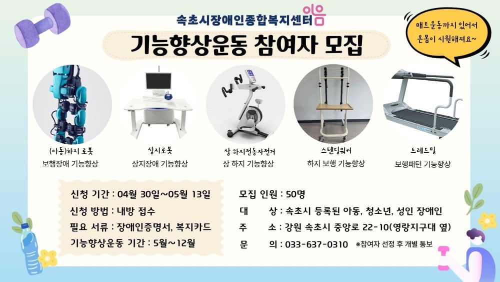 [속초시] [경로장애인과] 속초시 장애인종합복지센터 「이음」 프로그램 강사 모집 및 기능향상운동 참여자 접수
