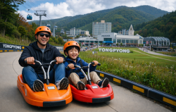평창 여행 중 가장 인기 있는 액티비티인 용평 루지는