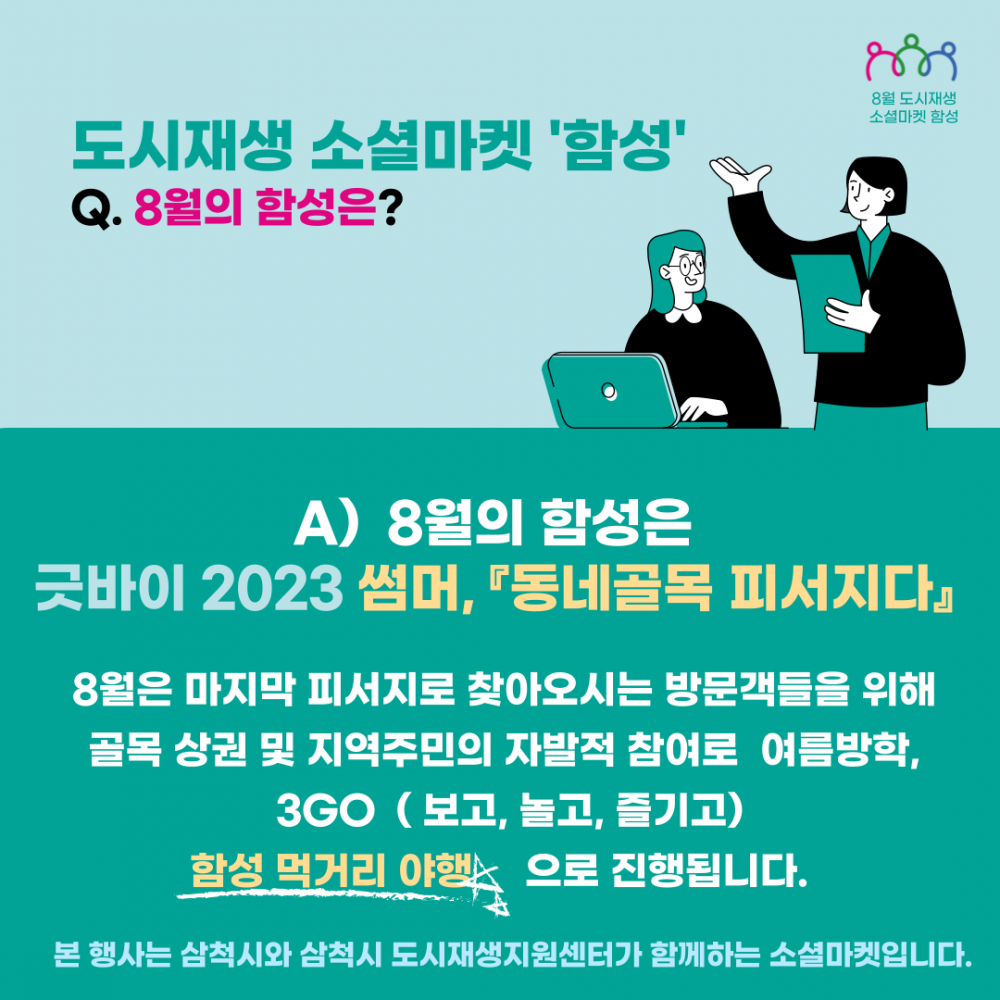 | [행사/삼척시] 제 10회 도시재생 소셜마켓 「함성」 행사 안내 | 행사 | 삼척시 | 2023-08-26 | 2023-08-26 |