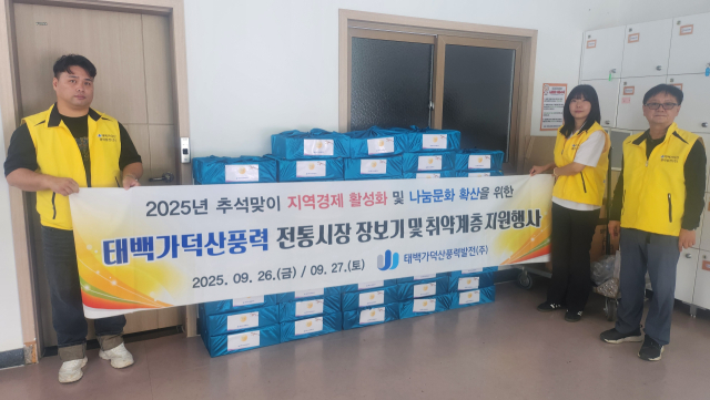 【태백】강원경제인대상 ESG경영상을 수상한 태백가덕산풍력발전(주)가 추석을 맞아 전통시장 장보기 행사와 함께 취약계층 물품 지원에 나섰다.