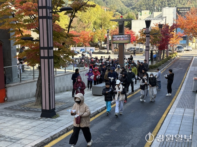 ◇2025 태백시민 산소길 걷기대회가 2일 태백 황지연못 문화광장과 본적산 일원에서 열려 성황리에 마무리 됐다. 태백=전명록기자【태백】청명한 가을하늘 만발한 단풍 속에서 치러진 2025 태백시민 산소길 걷기대회가 2일 태백 황지연못 문화광장과 본적산 일원에서 성황리에 마무리 됐다.