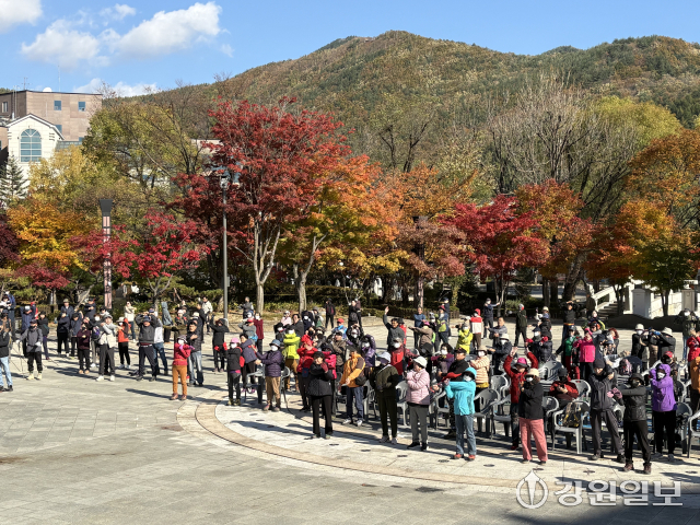 ◇2025 태백시민 산소길 걷기대회가 2일 태백 황지연못 문화광장과 본적산 일원에서 열려 성황리에 마무리 됐다. 태백=전명록기자이영철 태백시산악연맹 회장은 “태백문화광장을 비롯해 황부자 며느리공원도 단풍이 절정에 이르고 있다”며 “많이 걸으며 건강을 챙기고 올 한해 즐겁게 마무리 했으면 좋겠다”고 말했다.