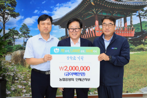 인제군이 지역 출신의 우수 인재를 발굴하기 위해 내년 39억원의 장학금을 지원한다. 사진은 농협인제군지부의 장학금 기탁 모습.