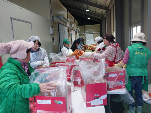 평창읍새마을지도자남녀협의회(회장:황용진·김석분)는 3일 회원 70명이 참여한 가운데 평창읍 전통시장(평창올림픽시장) 물류창고에서 ‘사랑의 김장김치 나눔 행사’를 개최했다.