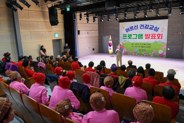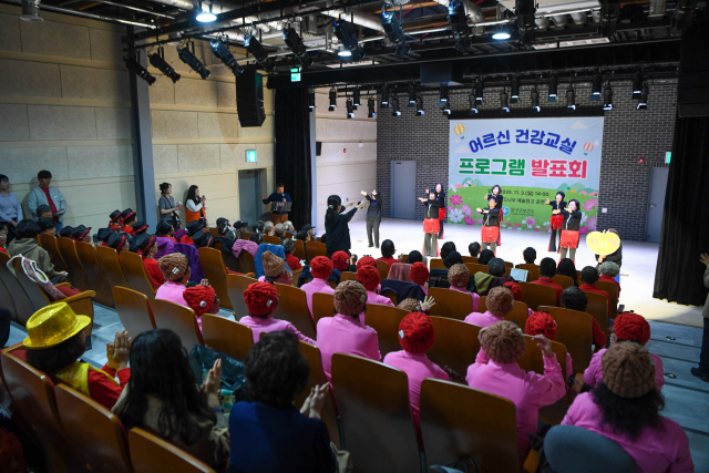 어르신 건강교실 프로그램 발표회가 지난 3일 버드나무예술창고 공연장에서 열렸다. 이날 서흥원 양구군수, 김왕규 강원특별자치도의원, 김선묵 양구군의원을 비롯해 5개 읍·면 건강교실 참여 어르신들과 관계자들이 참석해 한 해 동안 갈고닦은 실력을 선보이며 즐거운 시간을 보냈다.