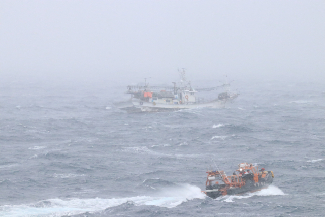 ◇2022년 2월 동절기 동해전해상 풍랑특보 발효 속 독도인근 기관고장 선박 구조 당시 현장 사진.동해해양경찰서는 ‘2025년 동절기 해양사고 대비·대응 계획’을 수립·시행한다.