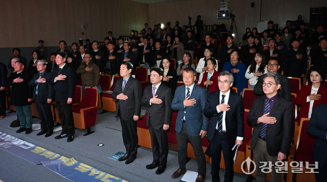 정부 5극 3특 계획에 따른 원주 발전방안 모색 포럼이 4일 원주 동부복합생활지원센터에서 박진오 강원일보 사장, 원강수 원주시장, 곽문근 원주시의회 부의장을 비롯한 내빈들이 참석한 가운데 열렸다. 신세희기자
