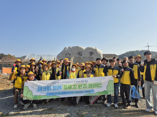 평창군시설관리공단(이사장:최순철)은 5일 봉평면 팔석정 일원에서 임직원과 평창시니어클럽 회원 등 45여 명이 참여한 가운데 '2025년 제3회 정례 플로깅 환경 캠페인'을 개최했다.