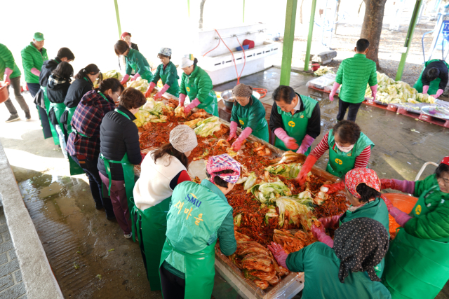 홍천군 서석면새마을남녀지도자협의회(회장:서만석·부녀회장:손화선)는 5일 서석면 체육공원에서 신영재 군수 등이 참석한 가운데 사랑의 김장·쌀 나눔 행사를 열고, 취약계층을 위해 김장 김치 350포기를 만들었다.