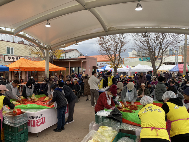 ◇‘제6회 동해 북평민속시장 김장대잔치’가 오는 8일 북평민속시장 야외공연장에서 열린다. 사진은 지난해 행사의 모습.【동해】지역의 정과 전통의 맛을 나누는 '제6회 북평민속시장 김장대잔치'가 오는 8일 낮 12시부터 3시까지 동해 북평민속시장 야외공연장에서 열린다.