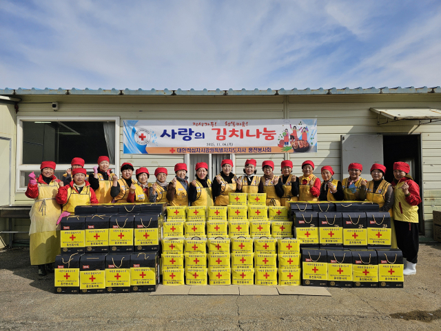 대한적십자사 강원특별도지사 홍천봉사회(회장:안윤노)는 5일부터 6일까지 지역 내 저소득층 100가구를 방문해 300만원 상당의 김장 김치와 후원 물품을 전달했다. 회원들은 홍천추레라중기(대표:권상철)가 무료로 제공한 밭에서 직접 배추, 무 등을 재배해 김장 봉사를 했다.