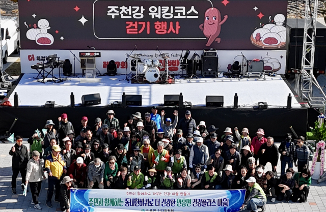 ◇제17회 안흥찐빵축제가 7일 횡성군 안흥면 안흥찐빵모락모락마을 일원에서 개막돼 행사 첫날 주천강 워킹코스 걷기행사 참석자들이 파이팅을 외치고 있다.
