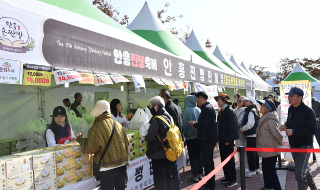 ◇제17회 안흥찐빵축제가 7일 횡성군 안흥면 안흥찐빵모락모락마을에서 개막한 가운데 축제장을 찾은 방문객들이 찐빵을 구입하기 위해 순서를 기다라고 있다.
