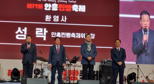 ◇제17회 안흥찐빵축제가 7일 횡성군 안흥면 안흥찐빵모락모락마을 일원에서 김명기 횡성군수, 표한상 횡성군의장, 유상범 국회의원 등 기관단체장과 주민, 방문객들이 참여한 가운데 열렸다. 성락 안흥찐빵축제위원장이 개막식에서 환영사를 하고 있다.