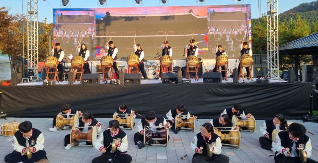 ◇횡성 민족사관고 사물놀이팀이 7일 횡성군 안흥면 안흥찐빵모락모락마을에서 막을 올린 제17회 안흥찐빵축제 개막식에서 공연을 펼치고 있다.