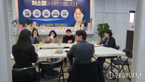 【춘천】 허소영 더불어민주당 춘천시장 예비후보는 23일 경계선 지능인 부모 커뮤니티인 ‘강원마주봄(대표:유은민)’ 관계자들과 간담회를 갖고 경계선 지능인의 생애주기별 통합 지원 체계 구축을 위한 방안을 논의했다.
