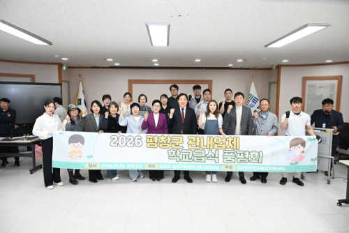 (재)평창푸드통합지원센터(이사장:임성원 평창부군수)는 26일 평창군농업기술센터 대회의실에서 급식 납품 업체, 평가단 등 70여 명이 참석한 가운데 2026년 평창군 학교급식 품평회를 개최했다.