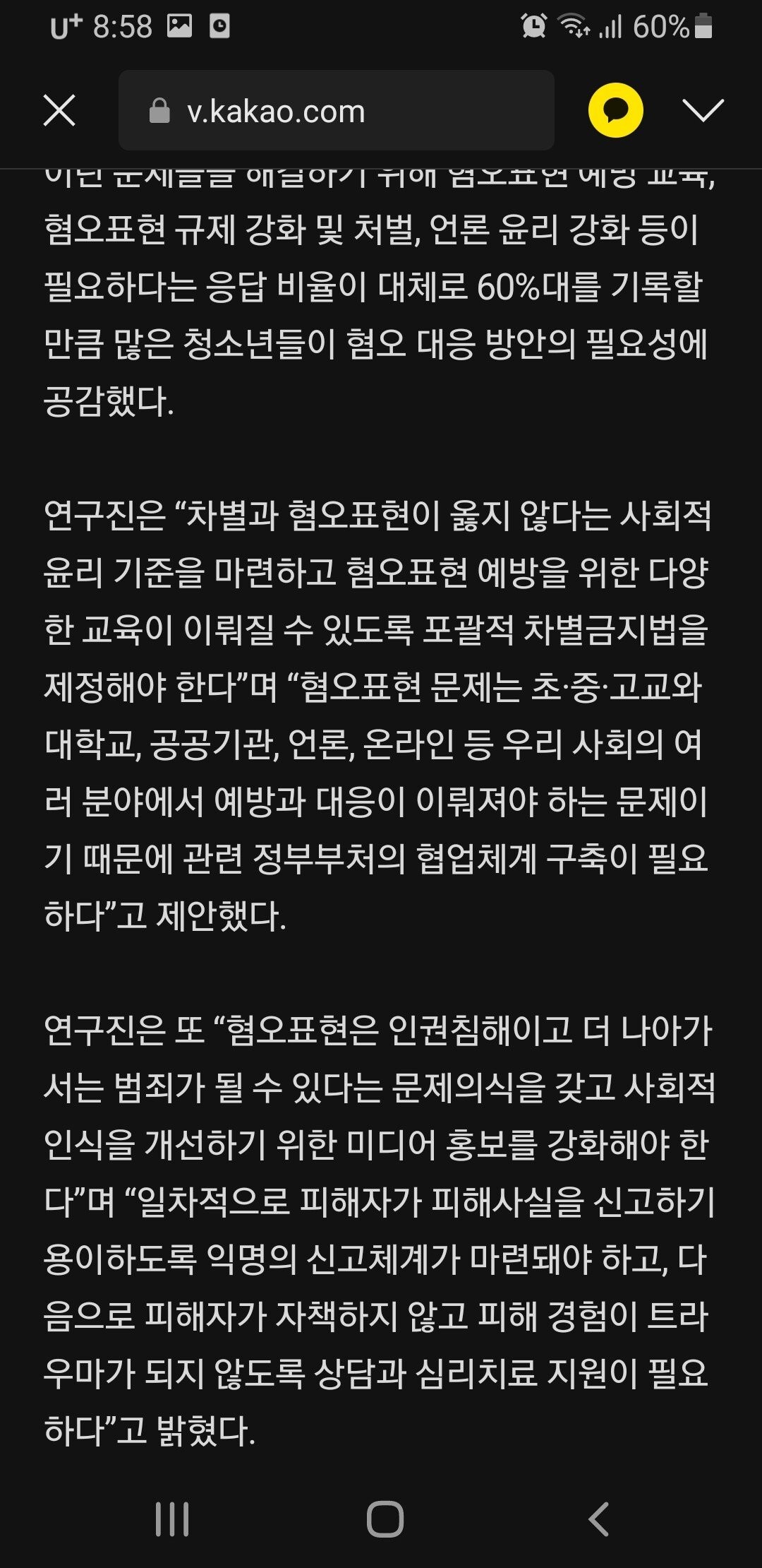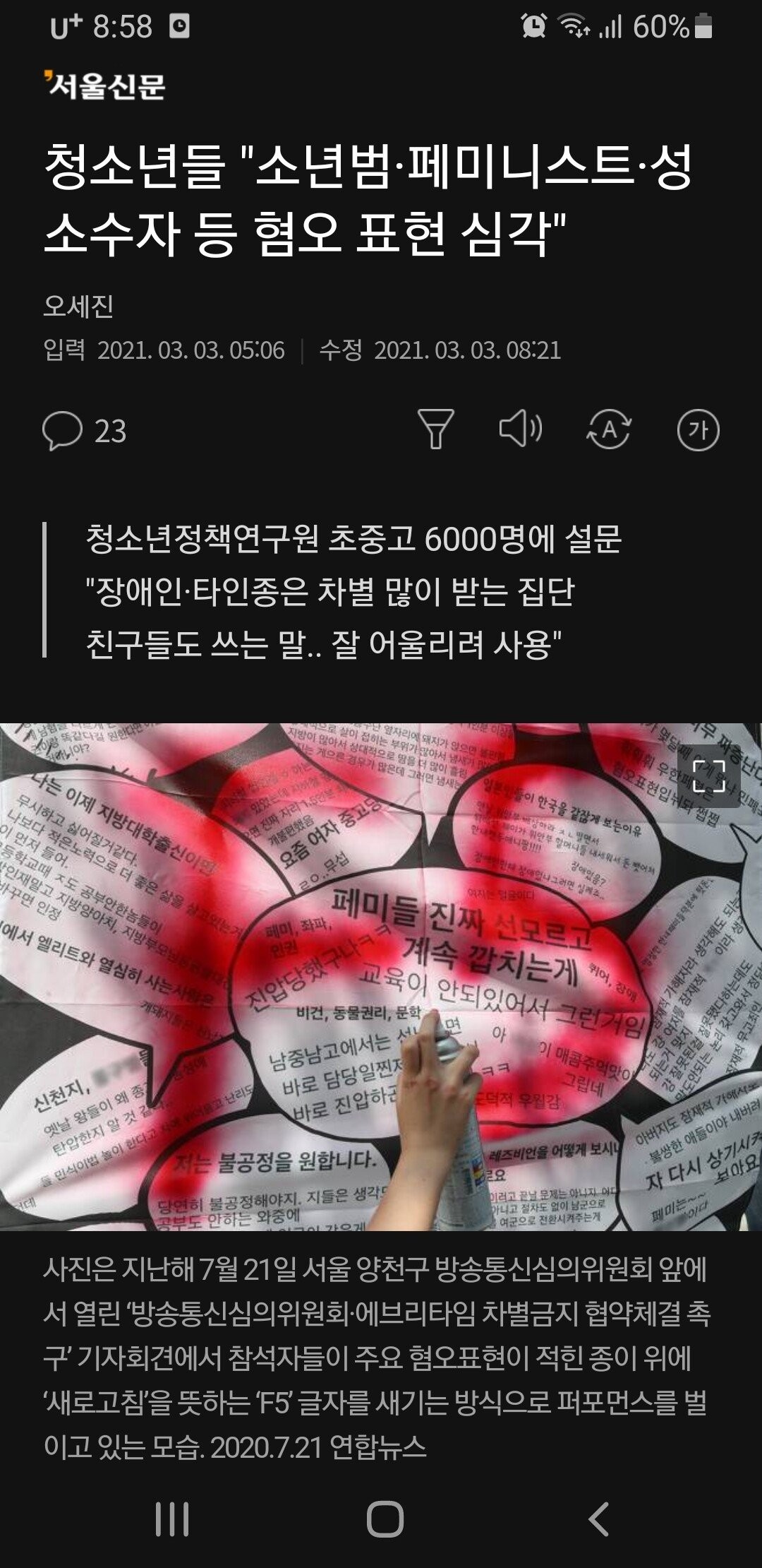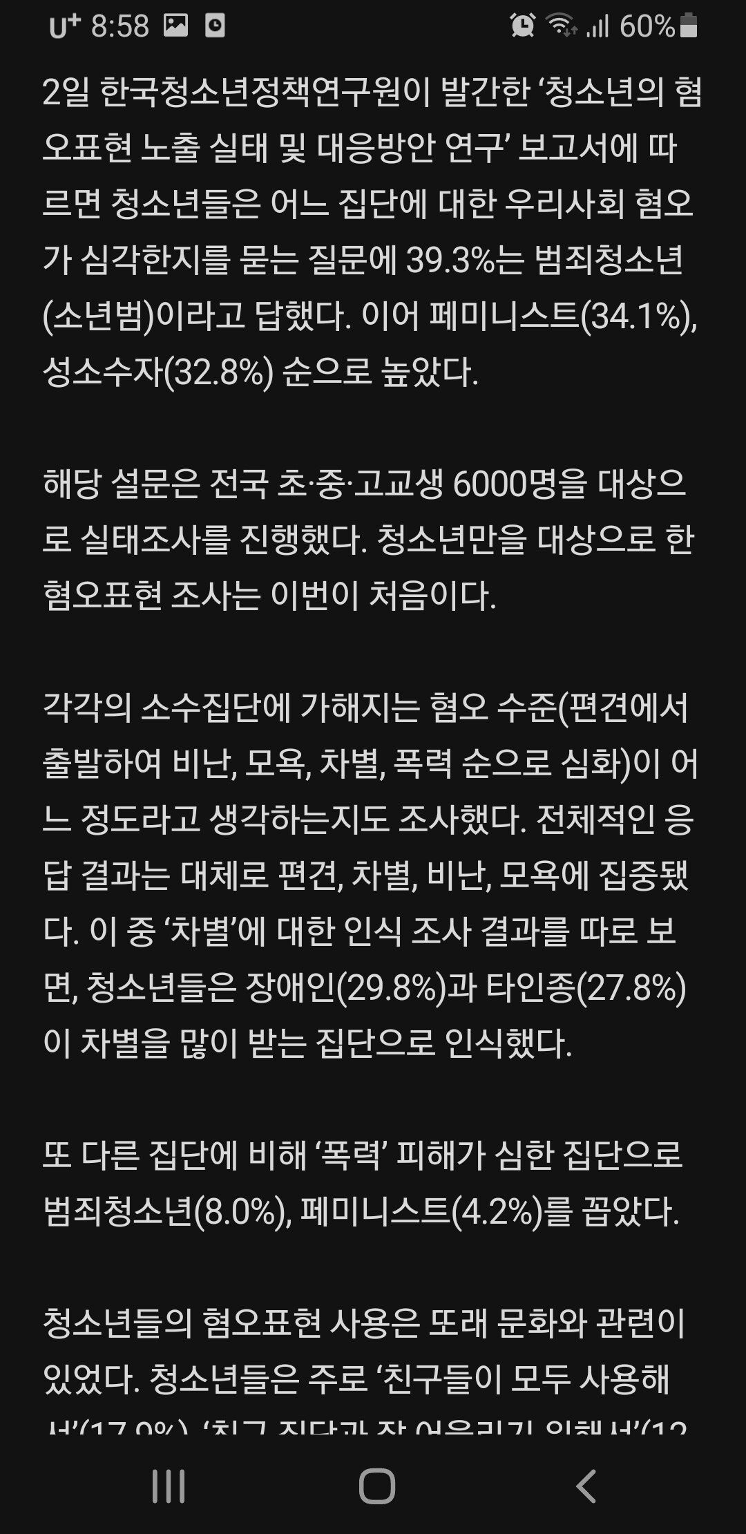 대한민국 청소년들....혐오 표현 사용 심각...