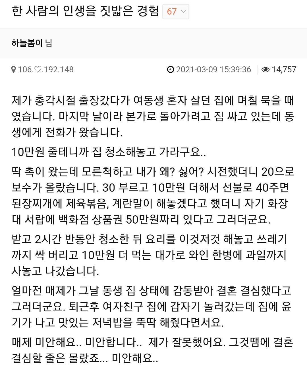 50만원 때문에 한 사람의 인생을 망쳐놓은 사람