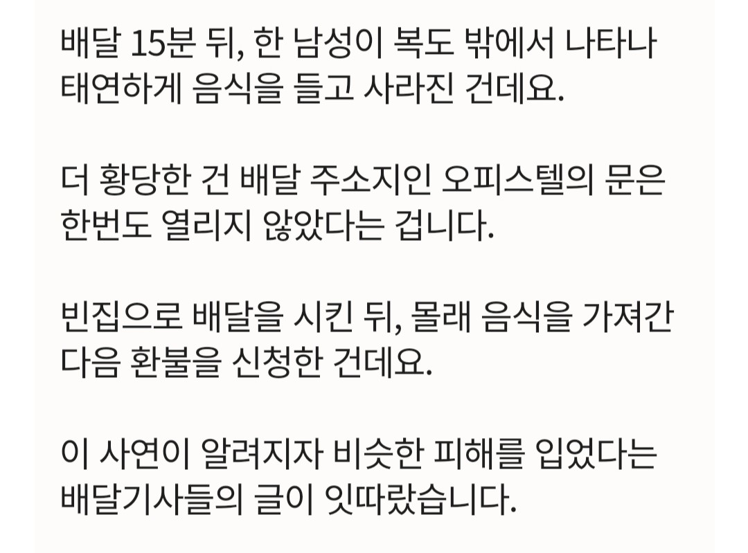 3. 배달기사가 다 뒤집어쓰고 돈 물어냄,