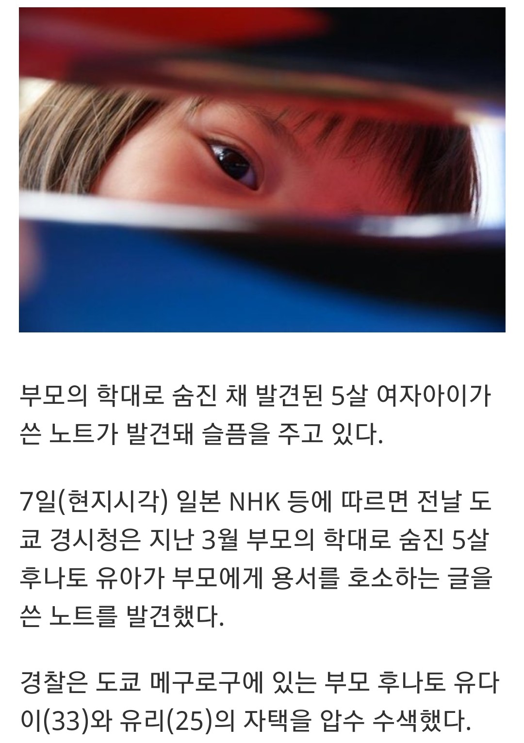 부모 학대로 숨진 5살 소녀의 가슴아픈 일기장