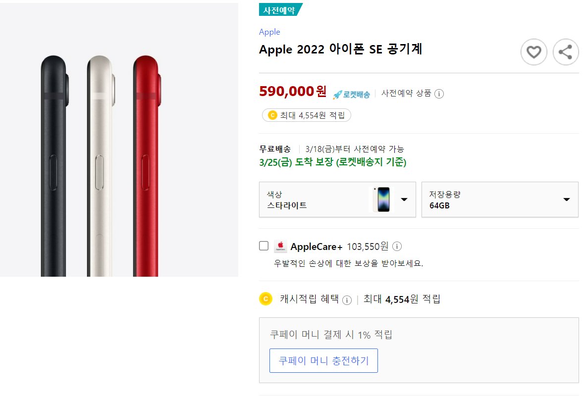 (속보) 아이폰 SE3 사전예약 오늘부터 시작했네요~
