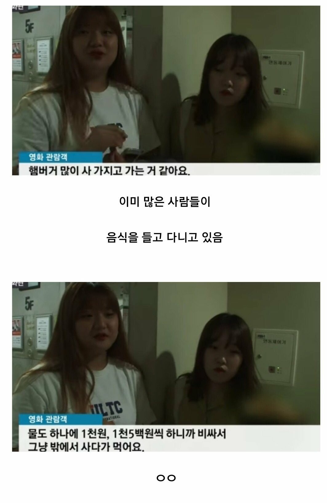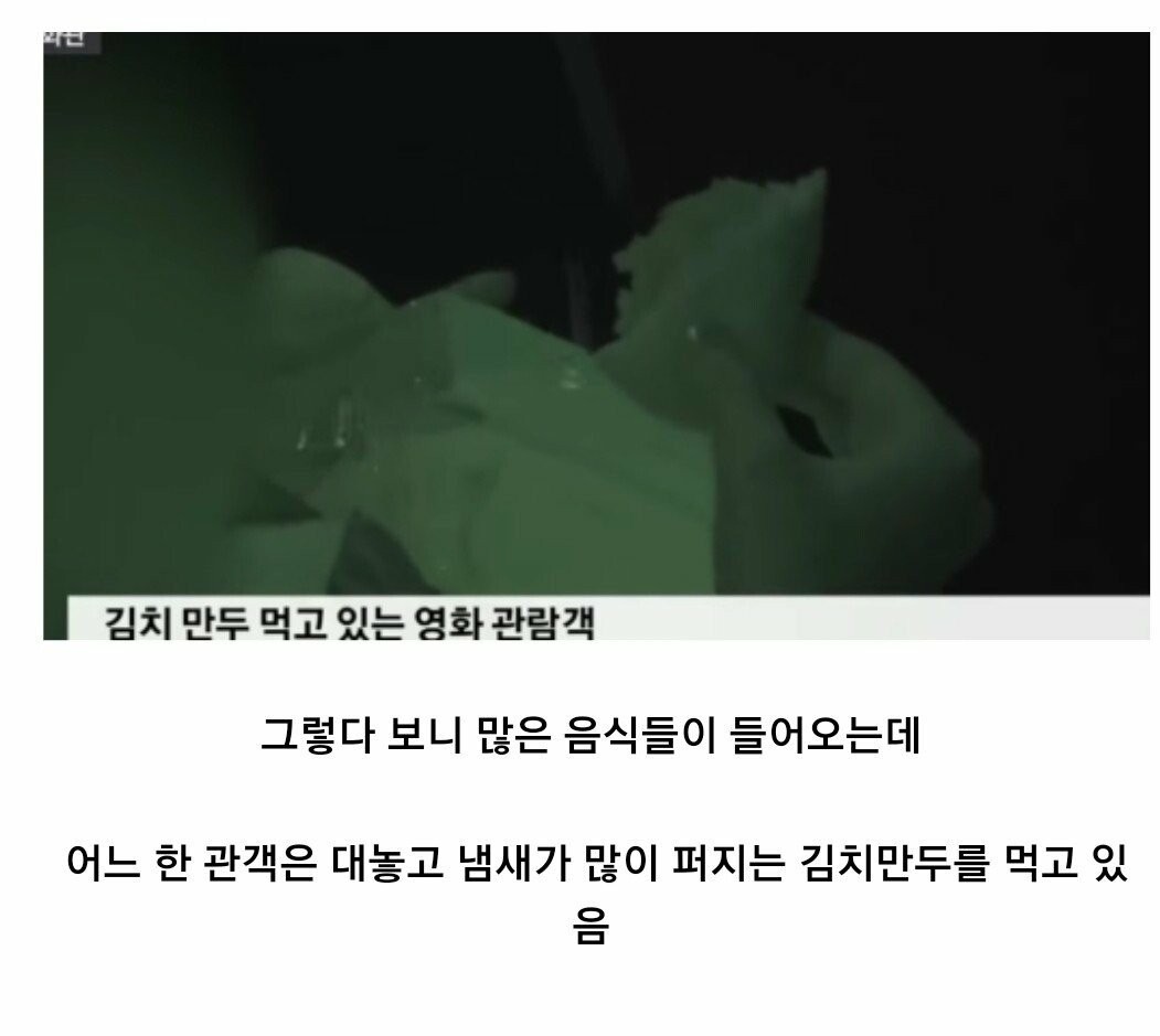 팝콘정도야 상관없지만 김치만두 가져와서 먹을거면 그냥 밖에서 밥을 먹고 오라고...