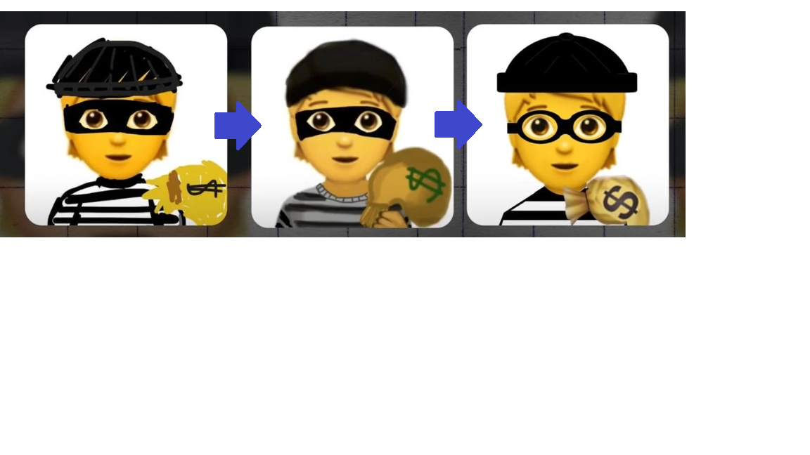 하지만 애플의 그 어디에도 도둑이모티콘은 존재하지 않았다